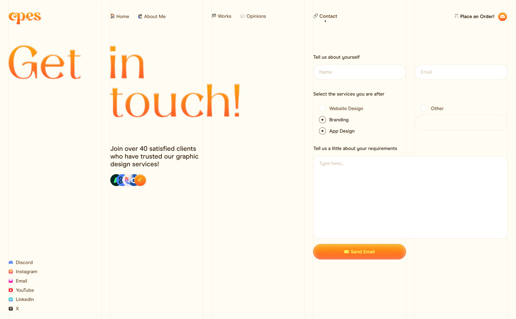 I developed "Opes," a complete brand identity and portfolio platform. I designed a cohesive visual system featuring a custom logotype, a warm and modern color palette, and an intuitive web interface to showcase my case studies. This focused digital presence successfully unified my startup projects and established a bold, mature foundation for my next career steps.